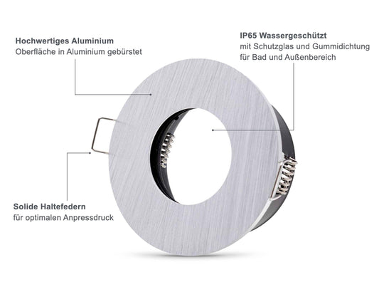 IP65 – bietet hohe Widerstandsfähigkeit gegen Strahlwasser. Die perfekte Wahl für Einbaustrahler über der Dusche, nahe der Badewanne oder in besonders feuchten Umgebungen.