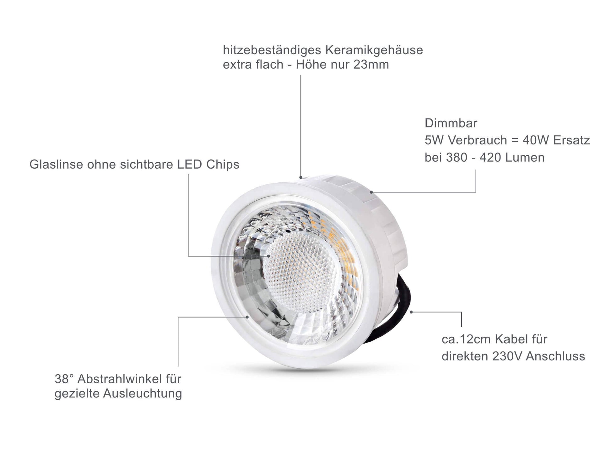 Unsere LED-Leuchten können direkt an 230V angeschlossen werden, ohne zusätzlichen Trafo.