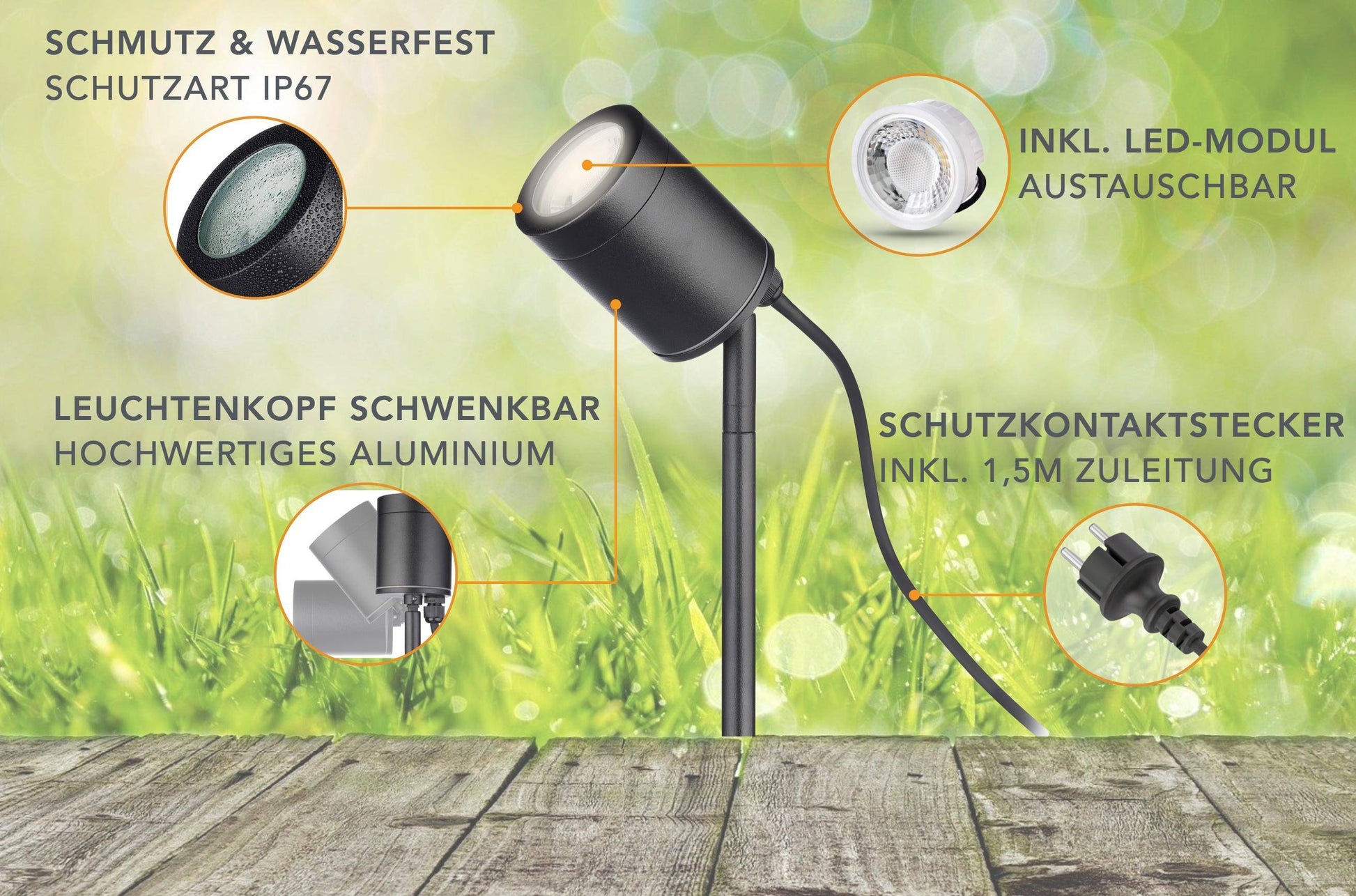 Gartenstrahler mit Erdspieß IP67 inkl. 230V 5W LED-Modul Dimmbar