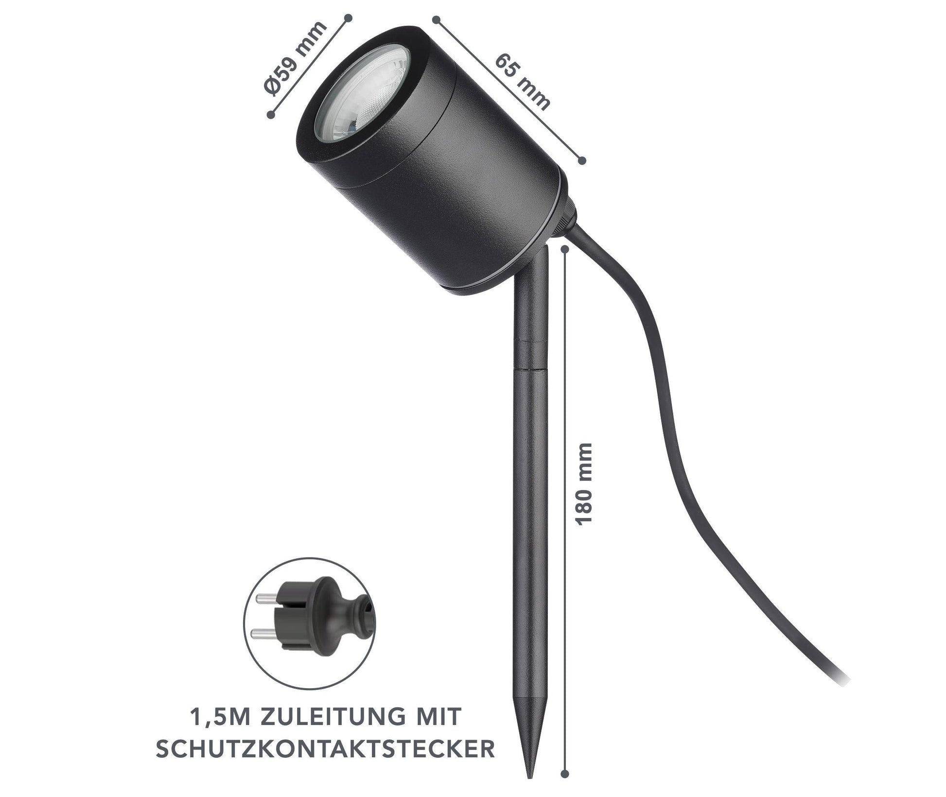 Einbautiefe (inkl. LED): 180 mm Erdspieß