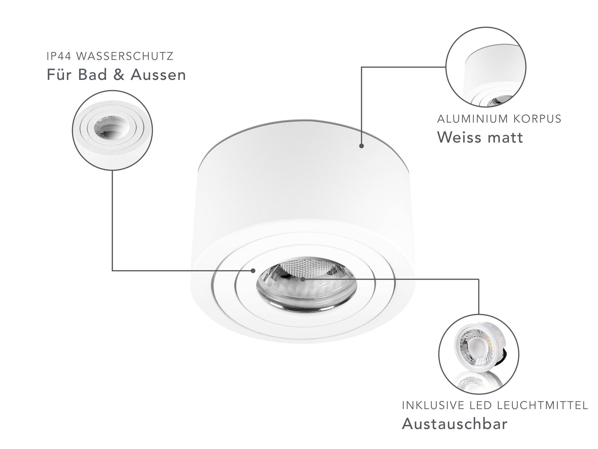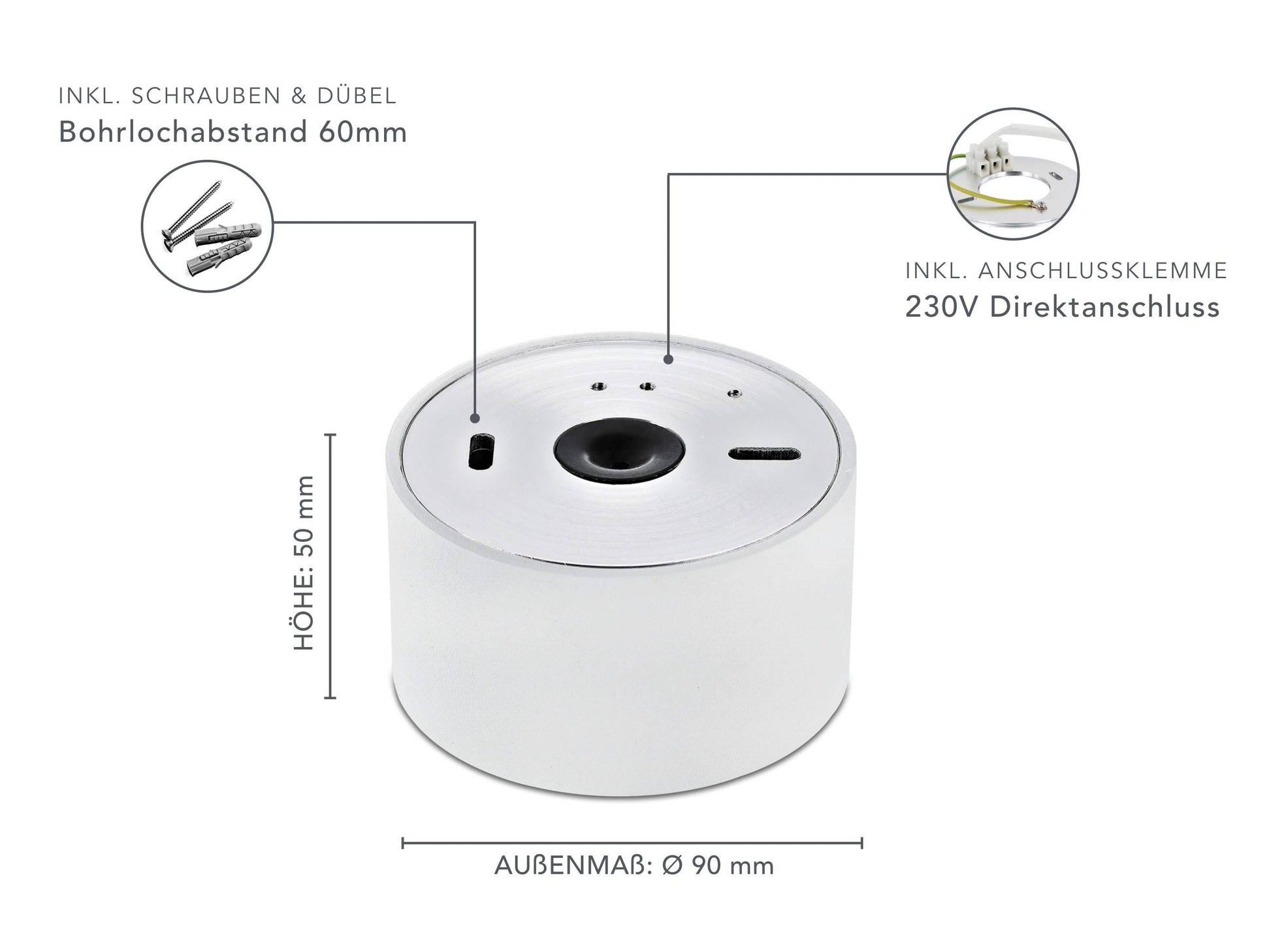 LED Aufbaustrahler IP44 Flach in Weiß Rund 230V 5W Dimmbar - Tablo