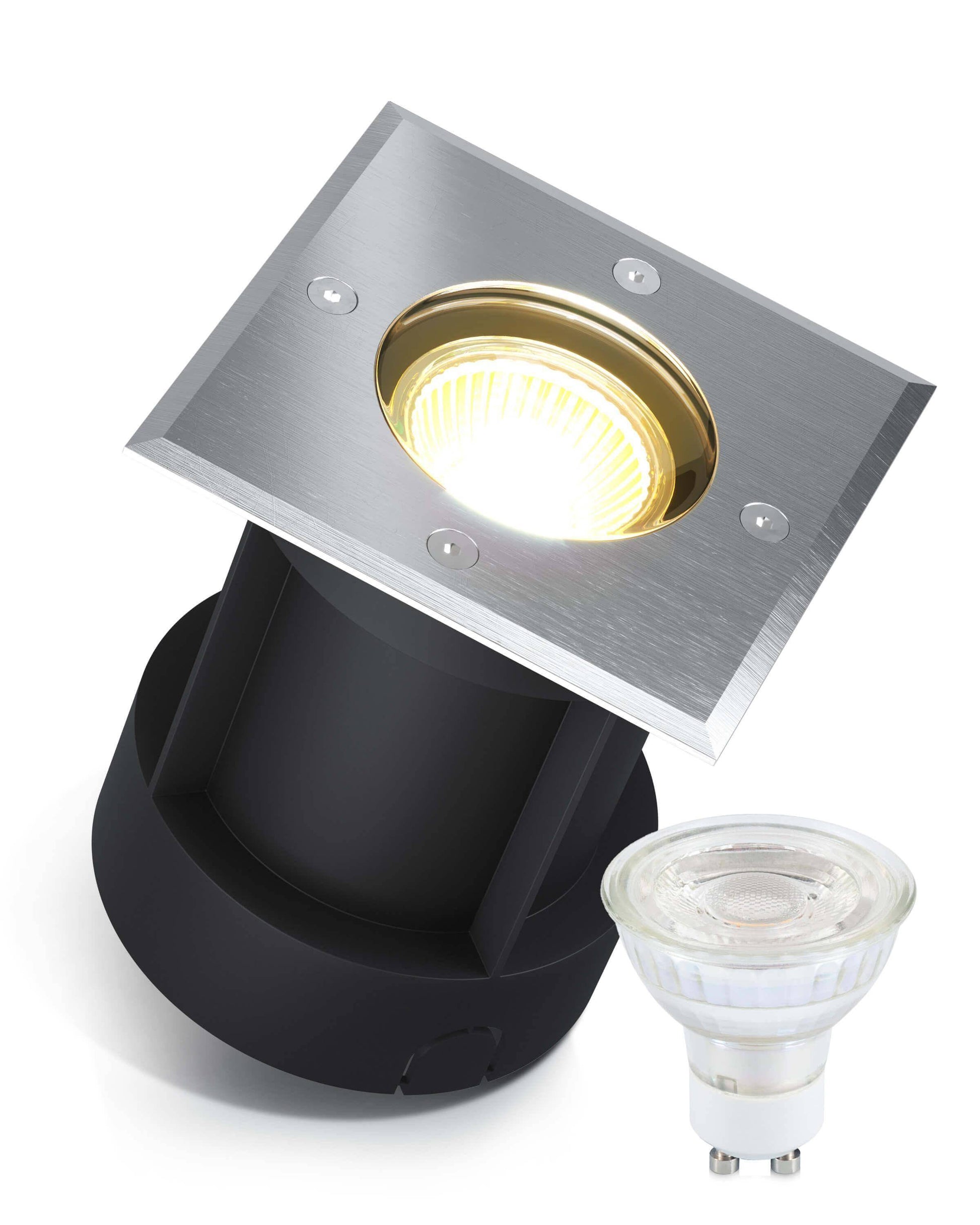 LED Bodeneinbaustrahler IP67 - Edelstahl gebürstet Eckig - 5W GU10 230V