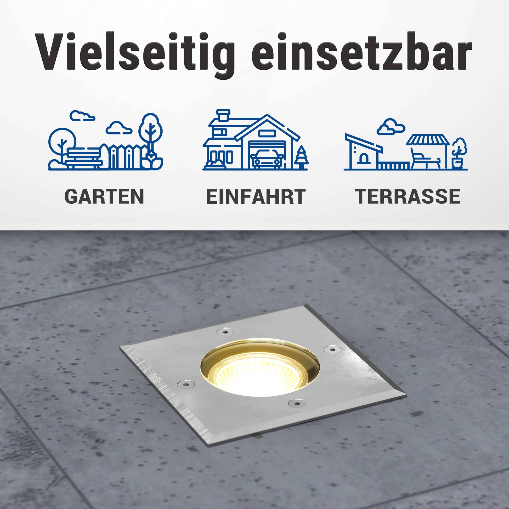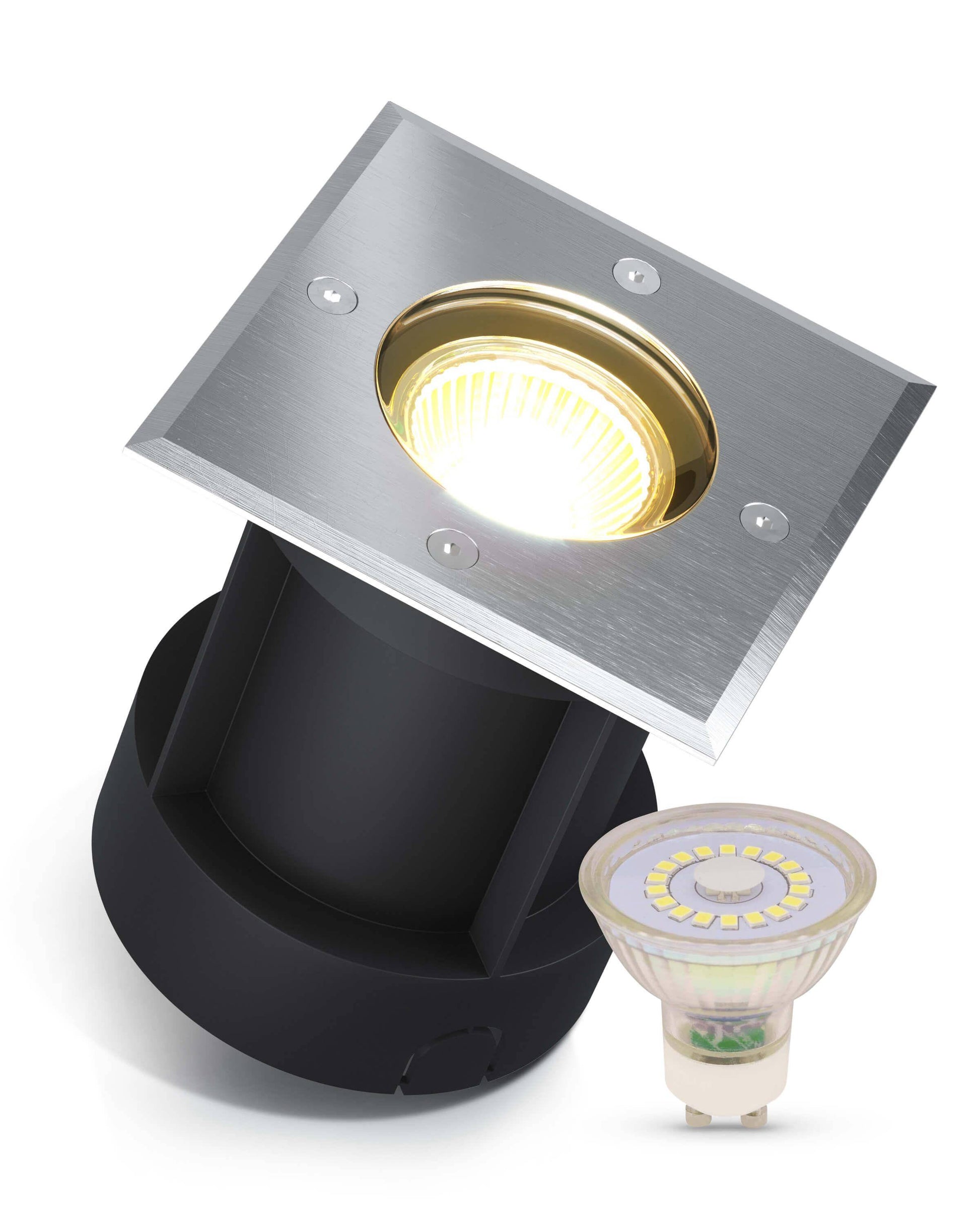 LED Bodeneinbaustrahler IP67 - Edelstahl gebürstet eckig mit GU10 3W 230V