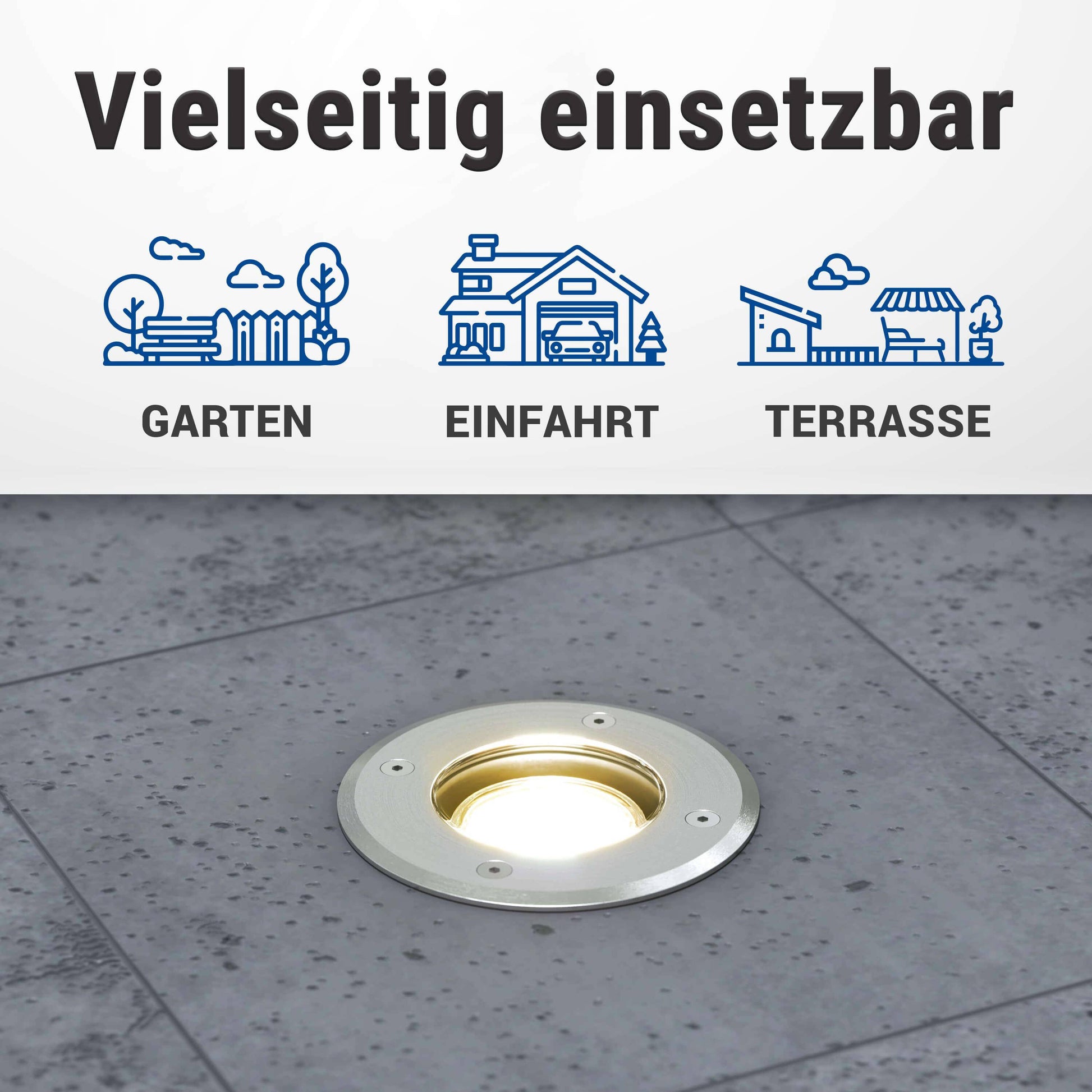 LED Bodeneinbaustrahler IP67 - Edelstahl gebürstet rund inkl. 3W GU10 230V
