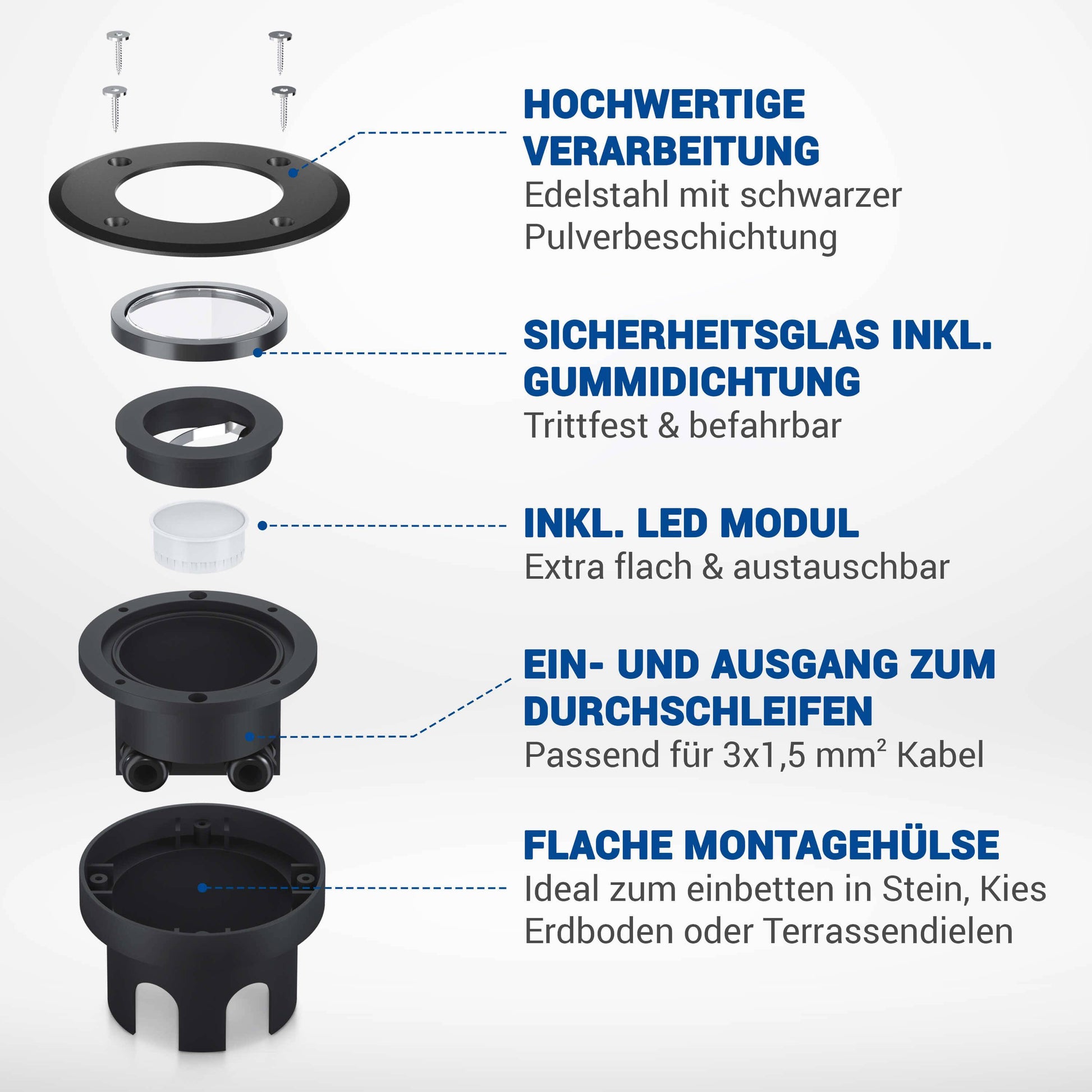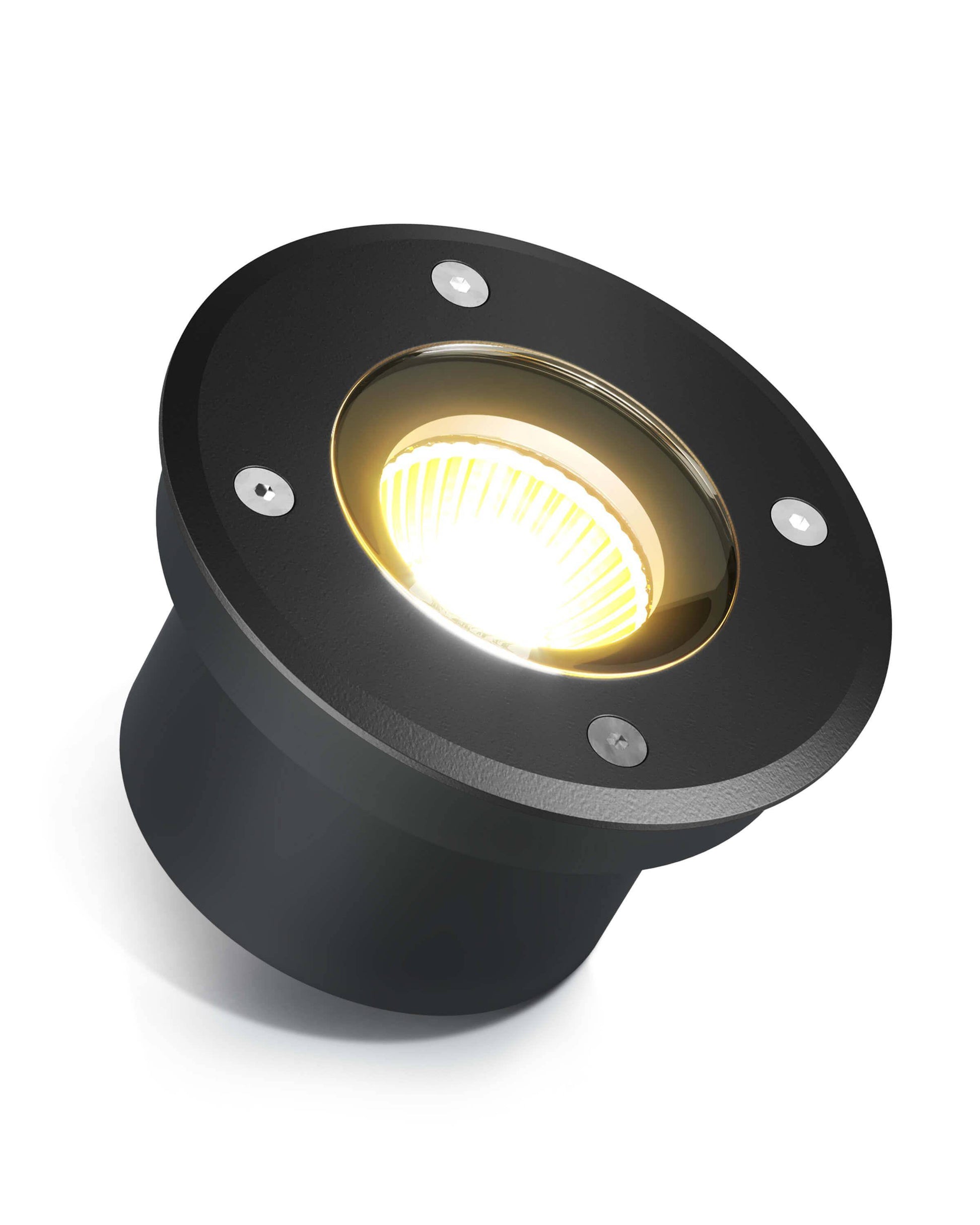 LED Bodenstrahler IP67 - flach, schwarz, rund mit LED-Modul 230V 5W dimmbar
