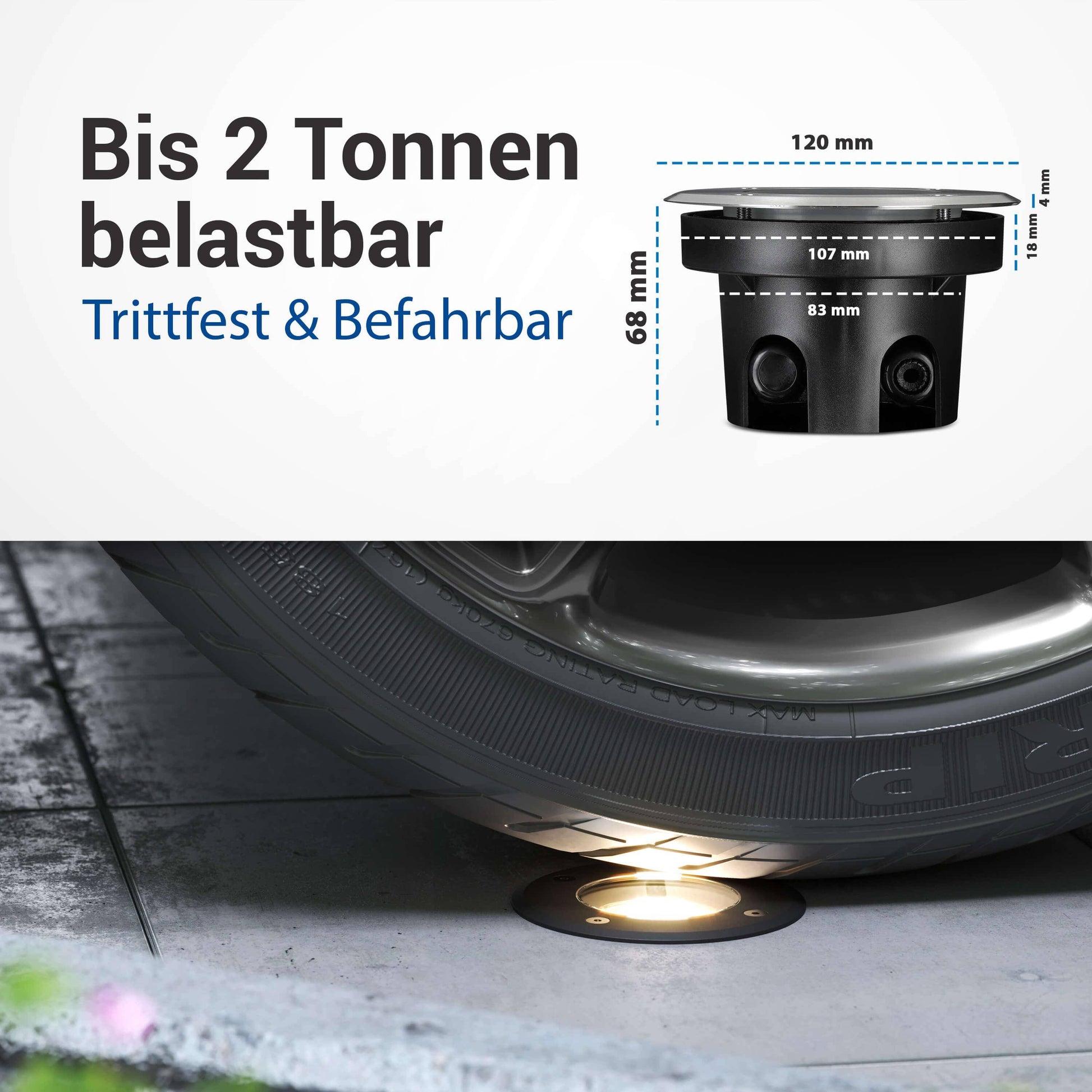 Das Beleuchtungskonzept für den Außenbereich soll nicht nur mit einem angenehmen Design überzeugen, sondern muss auch besonders robust sein. So wie der LED Bodenstrahler IP67 mit geringer Einbautiefe, dessen Edelstahl-Frontplatte über ein Sicherheitsglas und eine schwarze Oberfläche verfügt. Damit ist der Strahler nicht nur rostfrei, sondern auch trittfest. Darüber hinaus lässt er sich auch befahren. Damit bietet der LED Bodeneinbaustrahler mit geringer Einbautiefe besonders viele Einsatzmöglichkeiten wie beispielsweise Gartenwege, Terrassendielen oder Garageneinfahrten. Dank der Schutzart IP67 ist der Bodenstrahler zudem optimal gegen Schmutz und Wasser geschützt, was im Außenbereich besonders wichtig ist.