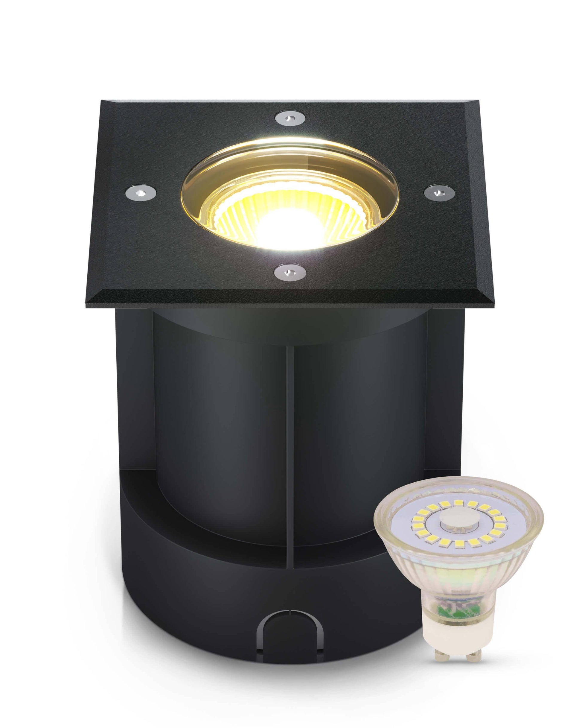 LED Bodenstrahler IP67 Schwarz Eckig inkl. 3W GU10 230V