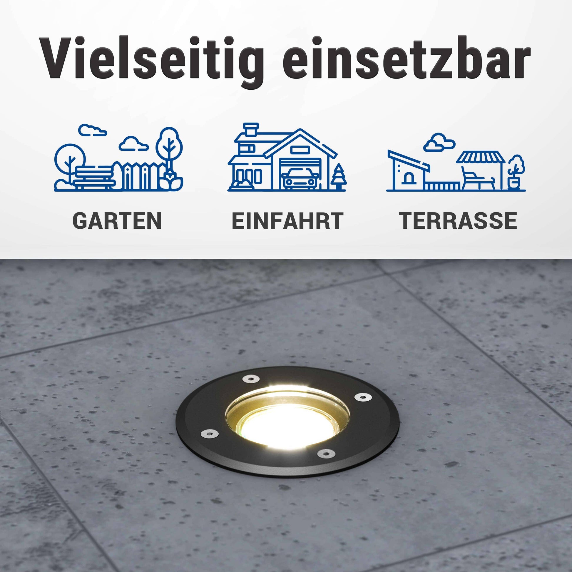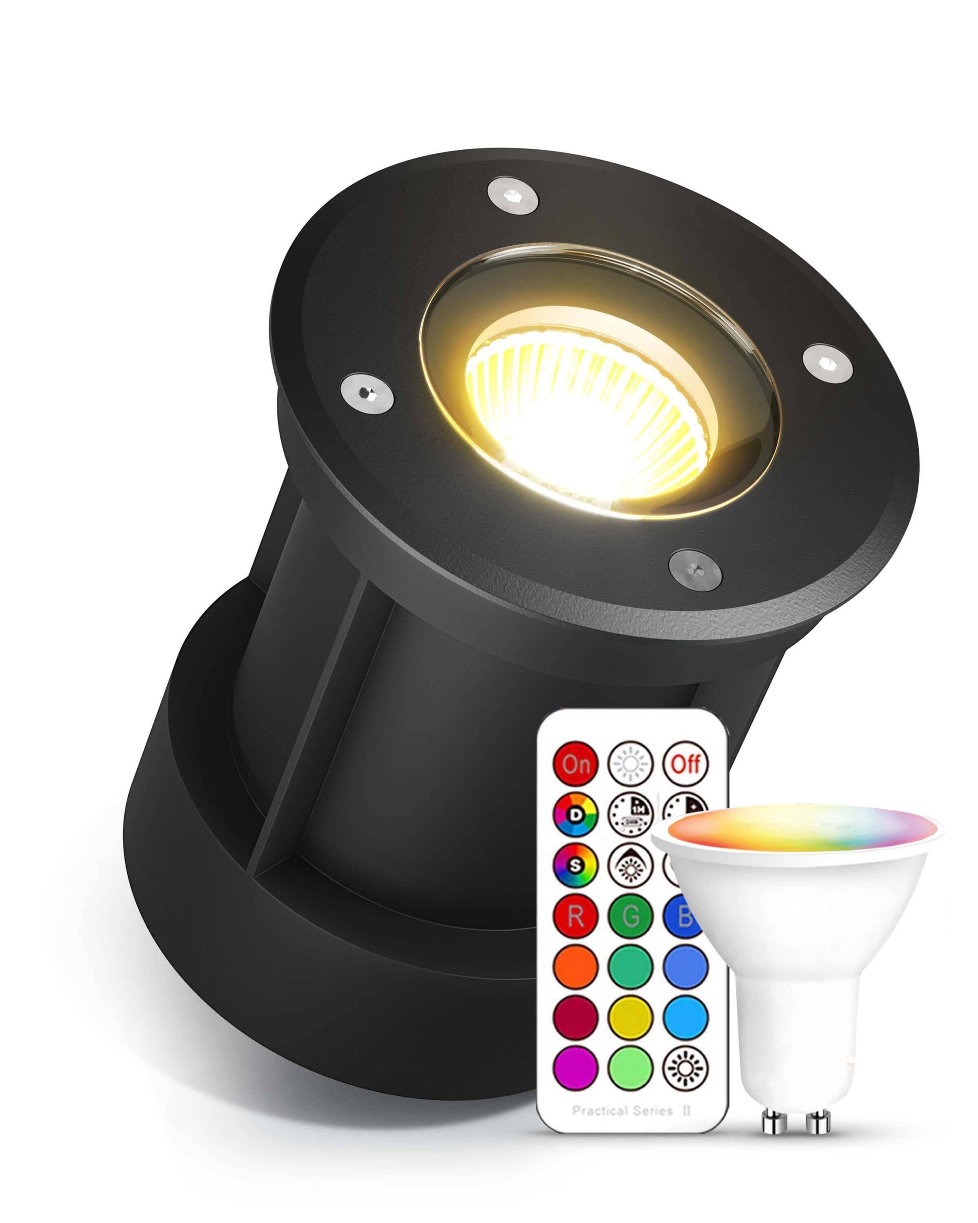 LED Bodenstrahler IP67 Schwarz rund mit RGB+CCT Farbwechsel 5W GU10