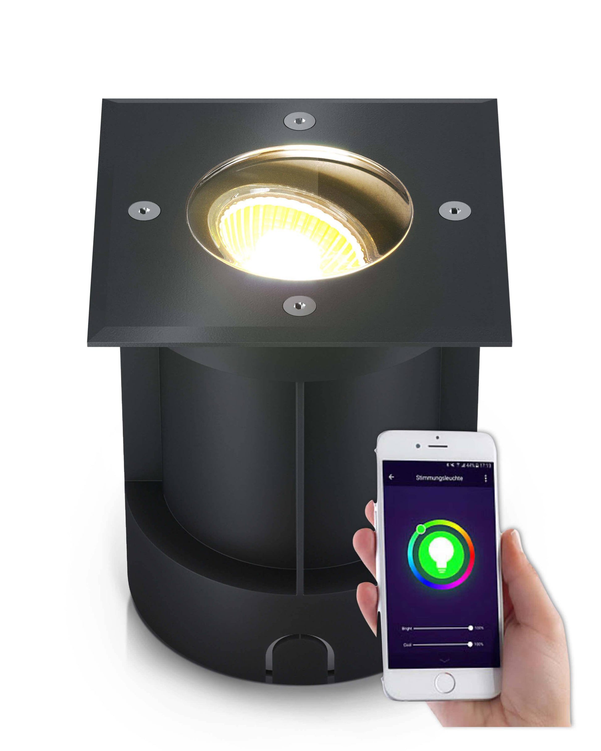 LED Bodenstrahler schwenkbar IP67 eckig schwarz mit RGB Farbwechsel - Smart Home Alexa & Google