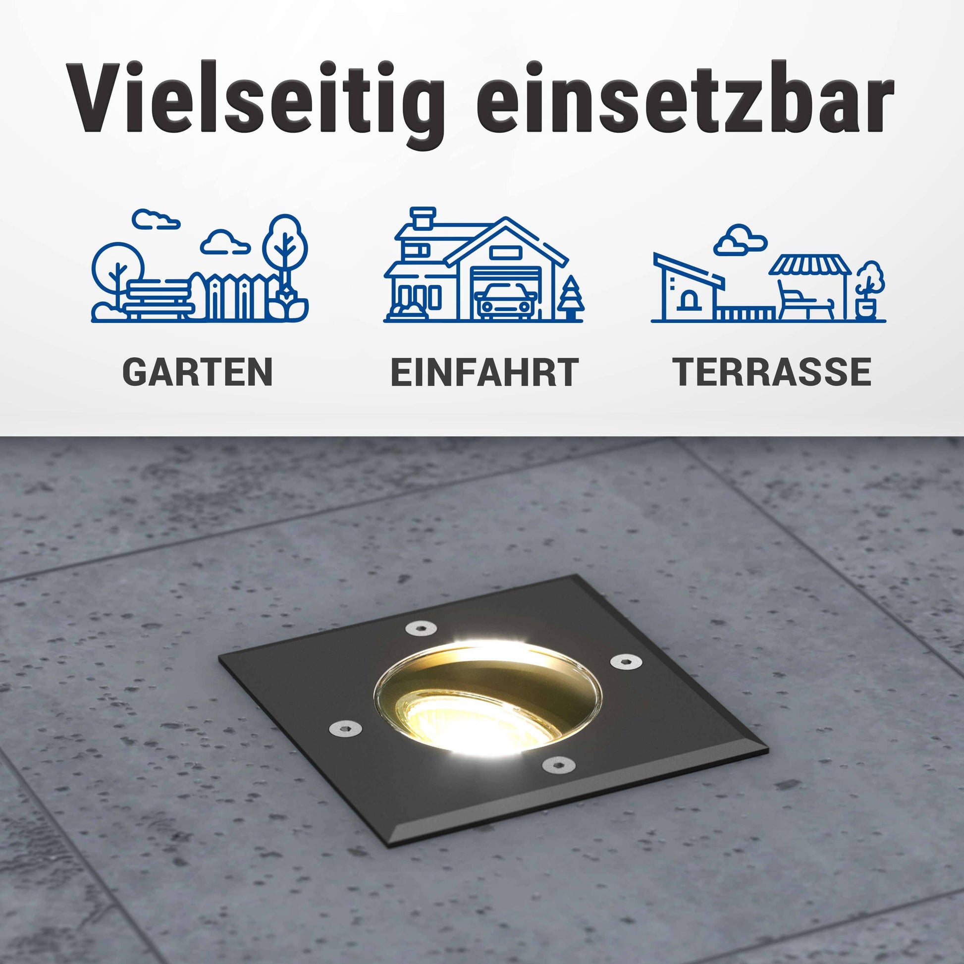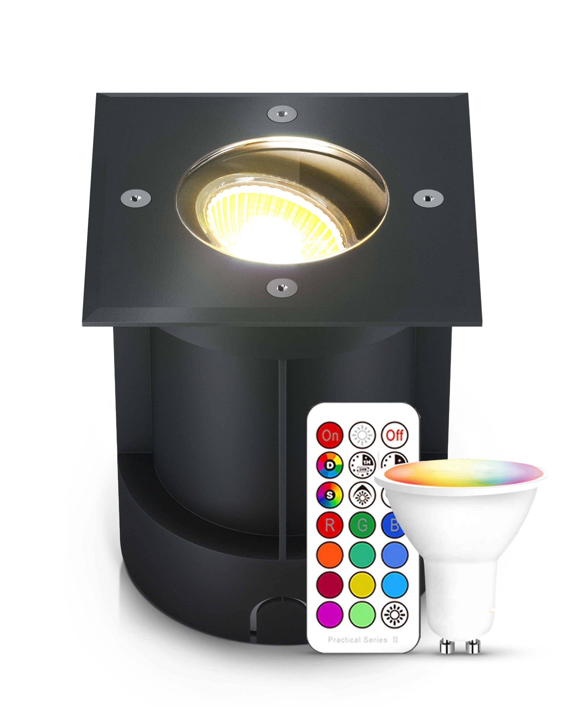 LED Bodenstrahler schwenkbar IP67 schwarz eckig mit RGB+CCT Farbwechsel 5W GU10