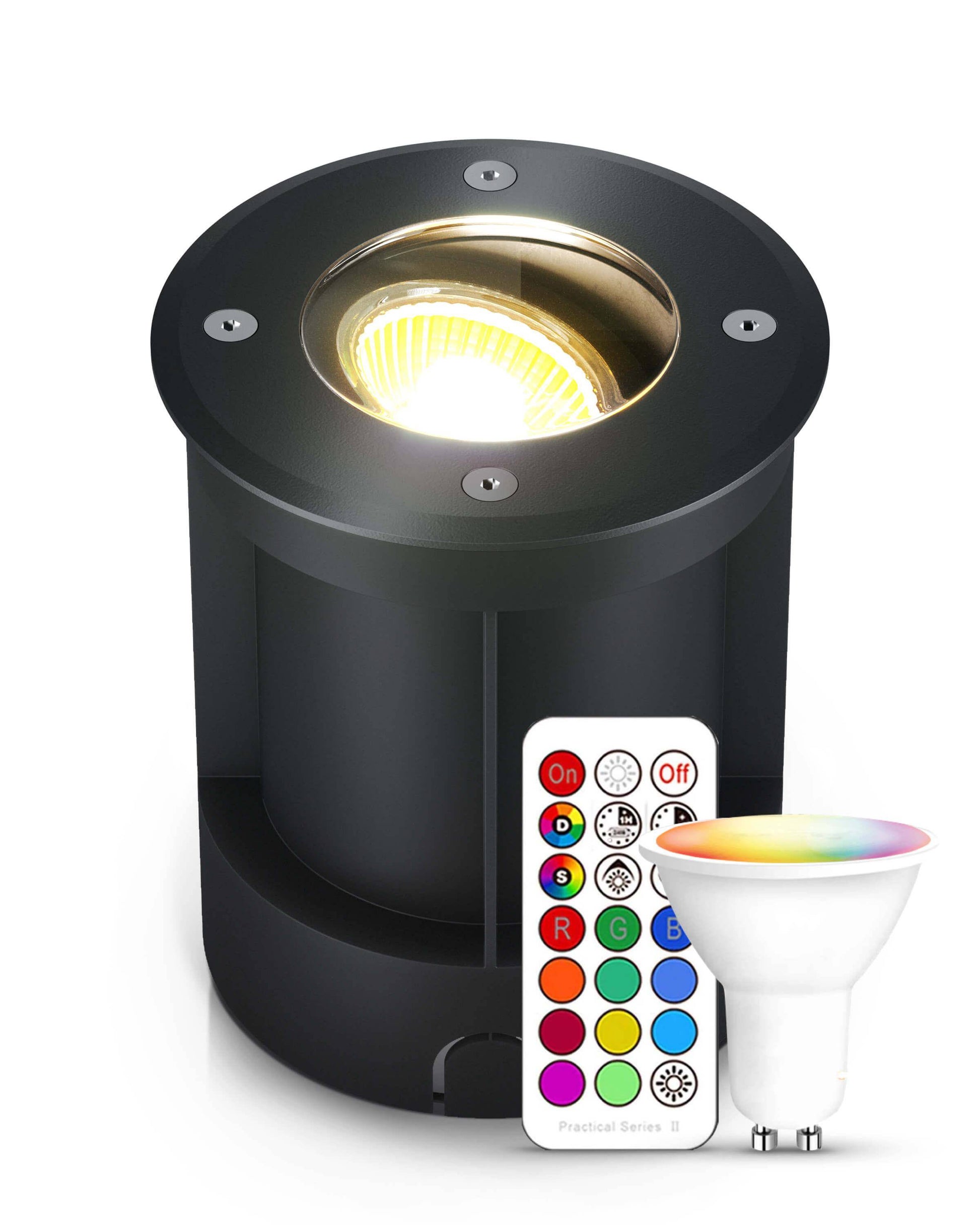 LED Bodenstrahler schwenkbar IP67 schwarz rund mit RGB+CCT Farbwechsel 5W GU10