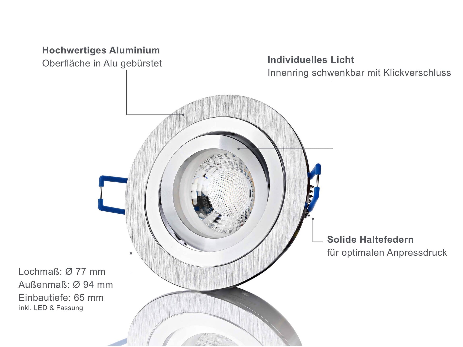 LED Einbaustrahler Dimmbar - Alu gebürstet Rund 5W GU10 LED - Designo