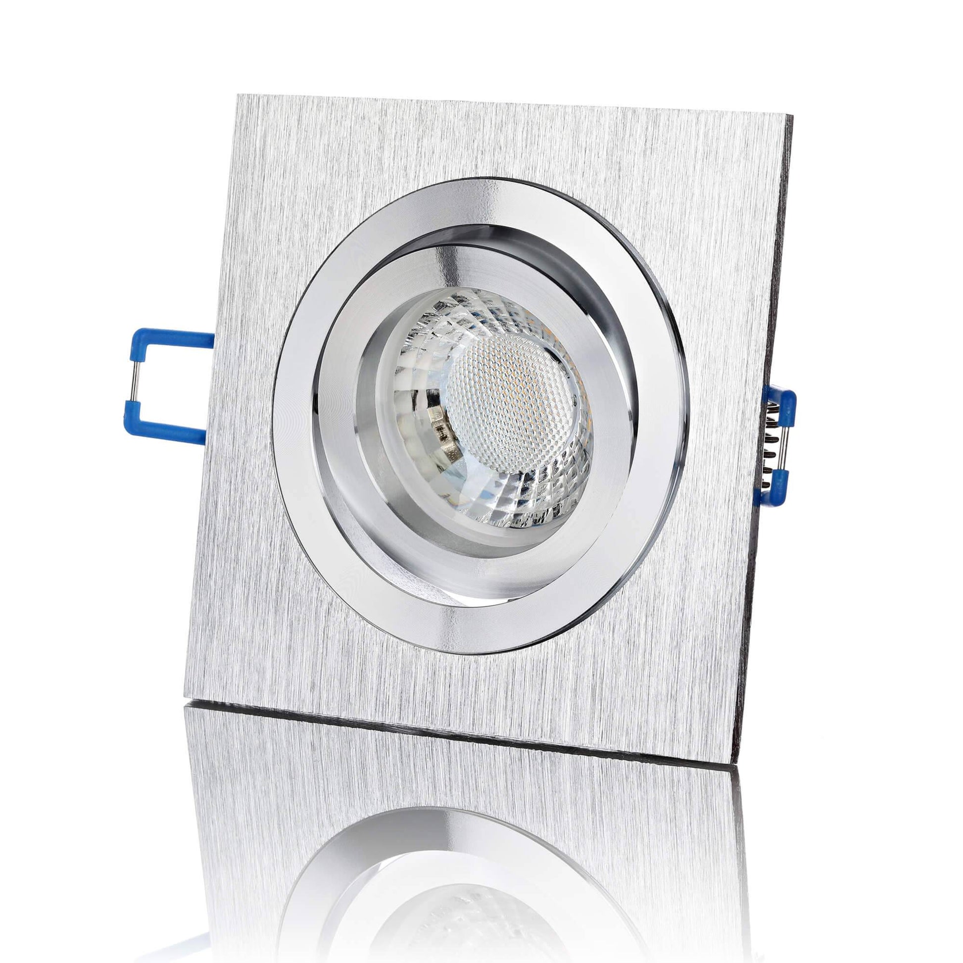 LED Einbaustrahler Flach - Alu gebürstet Eckig 5W LED Dimmbar - Designo