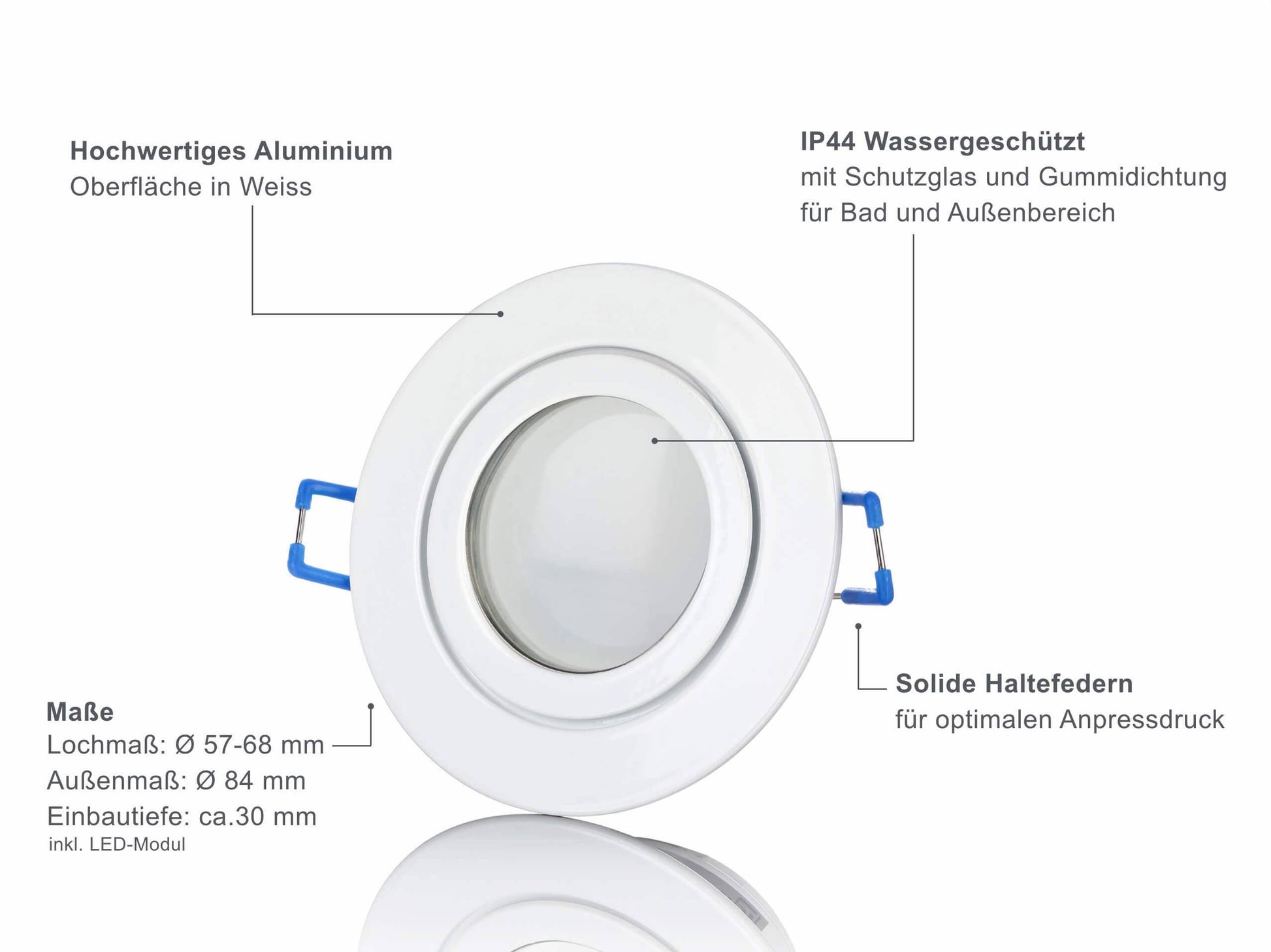 LED Einbaustrahler Flach IP44 - Weiß Rund 5W Dimmbar 120° - Agua