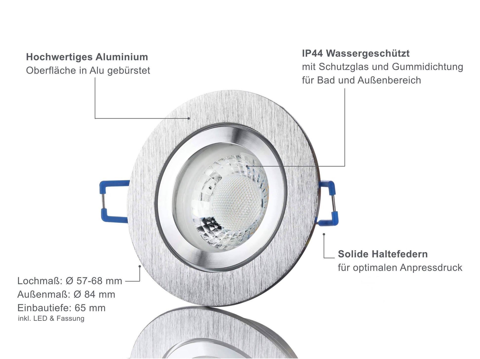LED Einbaustrahler IP44 Dimmbar - Alu gebürstet Rund 5W GU10 LED - Banja
