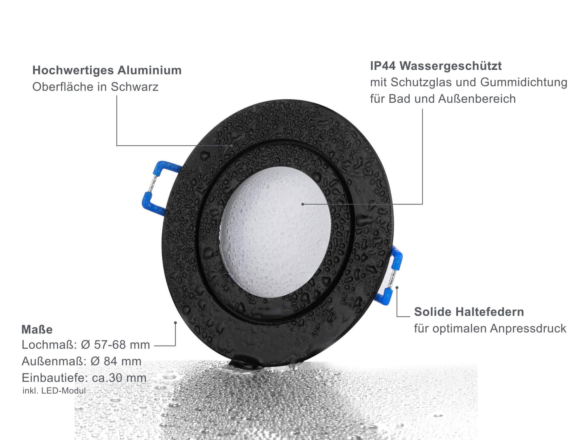 LED Einbaustrahler Flach IP44 - Schwarz Rund 5W Dimmbar 120° - Agua