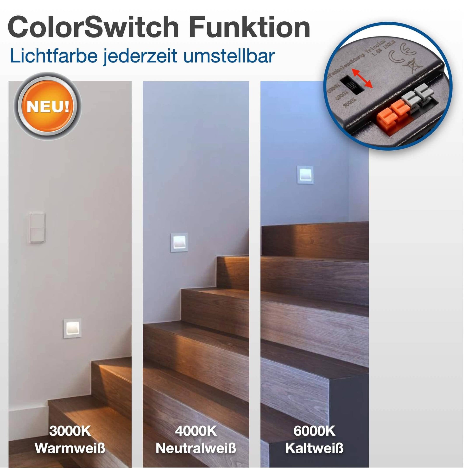 Lichtfarbe (Kelvin): 3000K - 4000K - 6000K
